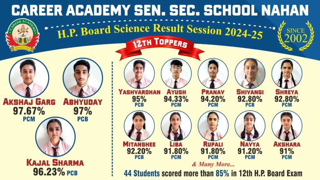 Career Academy strives for working with Missionary Zeal for Academic Excellence and to educate students to the highest levels of Academic Achievement, enabling them to reach and expand their potential along with their Personality Development.